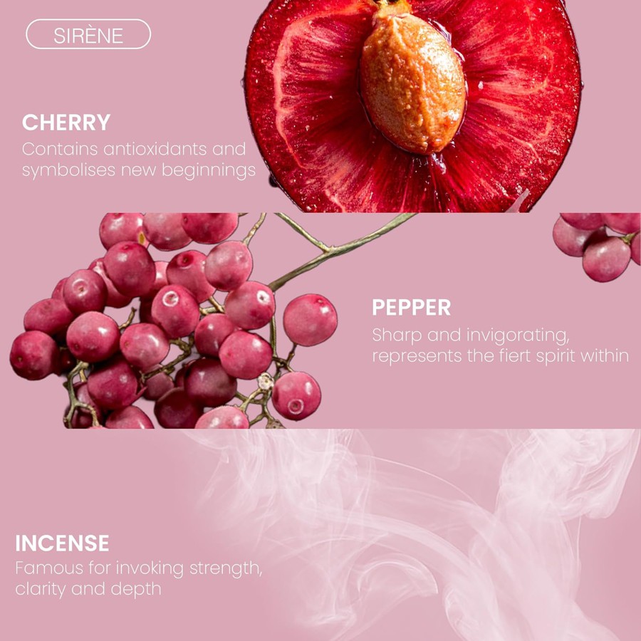 Sirène marks Fragrance Du Bois’s first female-inspired creation. This fruity gourmand fragrance combines bold cherry with dark incense and oud for a scent that commands attention.